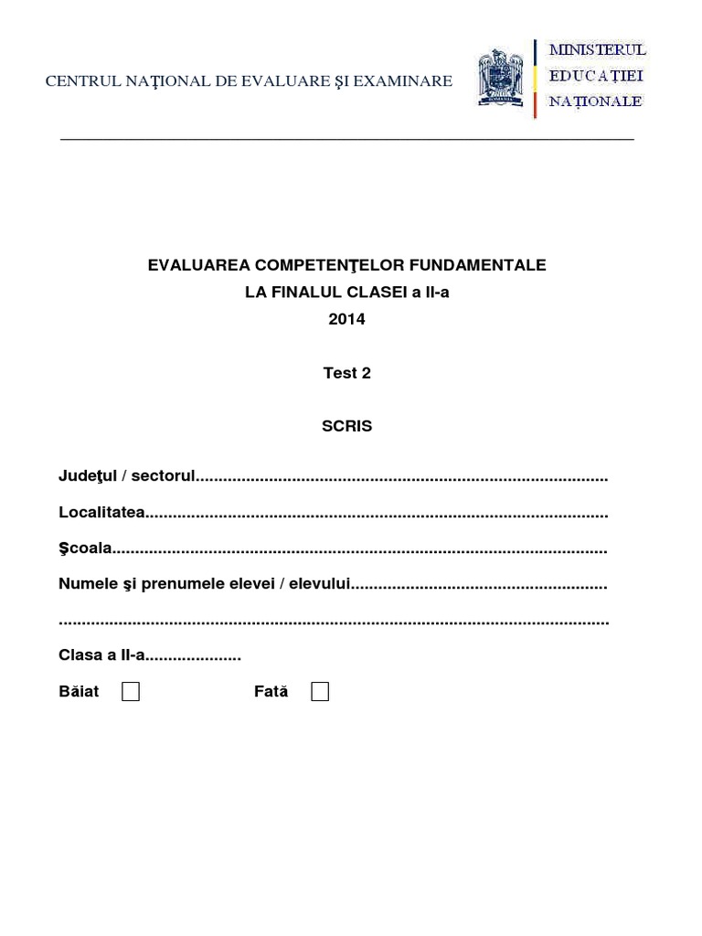 Teste pentru evaluarea nationala. Clasa a II-a. Comunicare ... from s12emagst.akamaized.net Joi, 24 iunie, se va desfasura proba la. Se discuta mult in mediul online (si nu numai) despre aceste evaluari, despre utilitatea lor. Calendarul stabilit de ministerul educatiei este: Intelegerea, exersarea si fixarea notiunilor. admitere liceu 2020 . Partea i descriptori de performanţă itemul foarte bine încercuieşte corect 4 i1 i2 i3. Calendarul stabilit de ministerul educatiei este: Agenția națională pentru curriculum și evaluare din cadrul ministerului educației, culturii și.